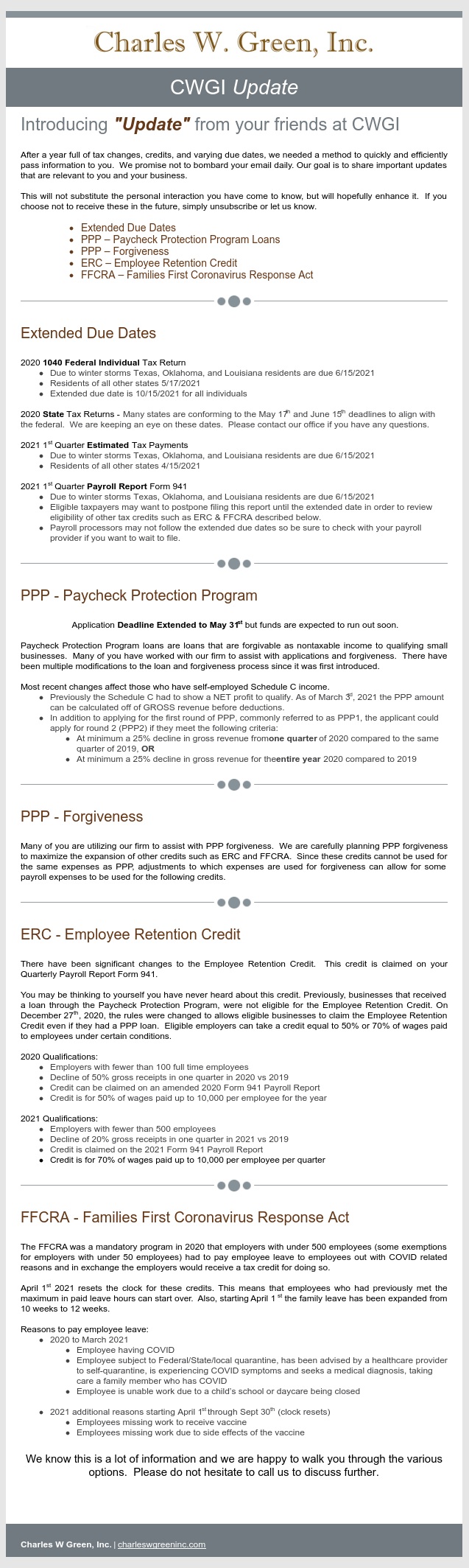 Issue 1 - PPP, ERC, & FFCRA
